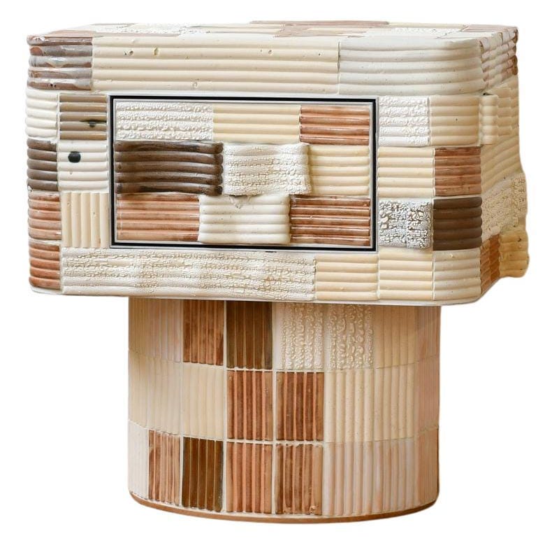 Sarcophagus Bedside Table in sculpted ceramics and wood