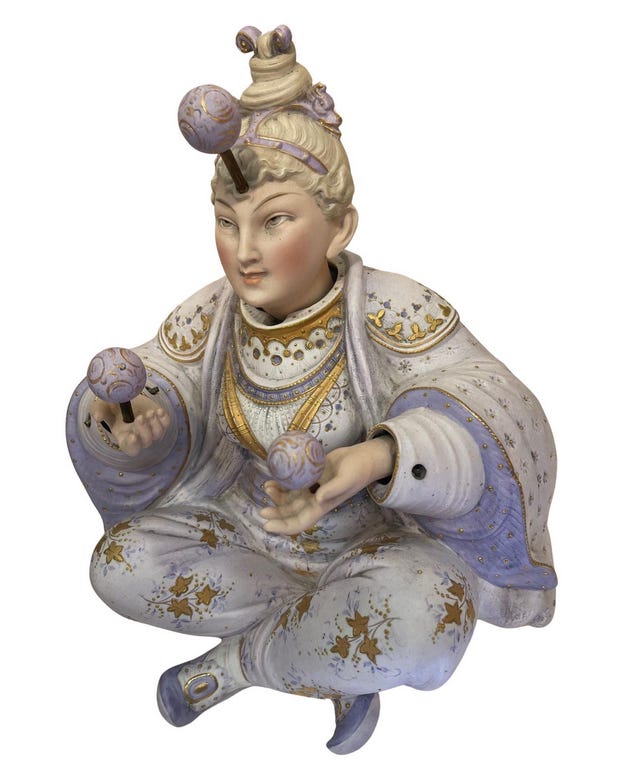 The Juggler Movable Porcelain Antique Figurative Statement Sculpture