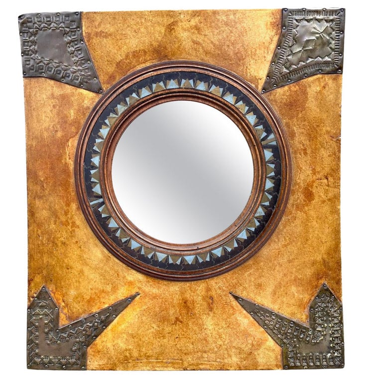 Rare Parchment and Copper Mirror by Carlo Bugatti